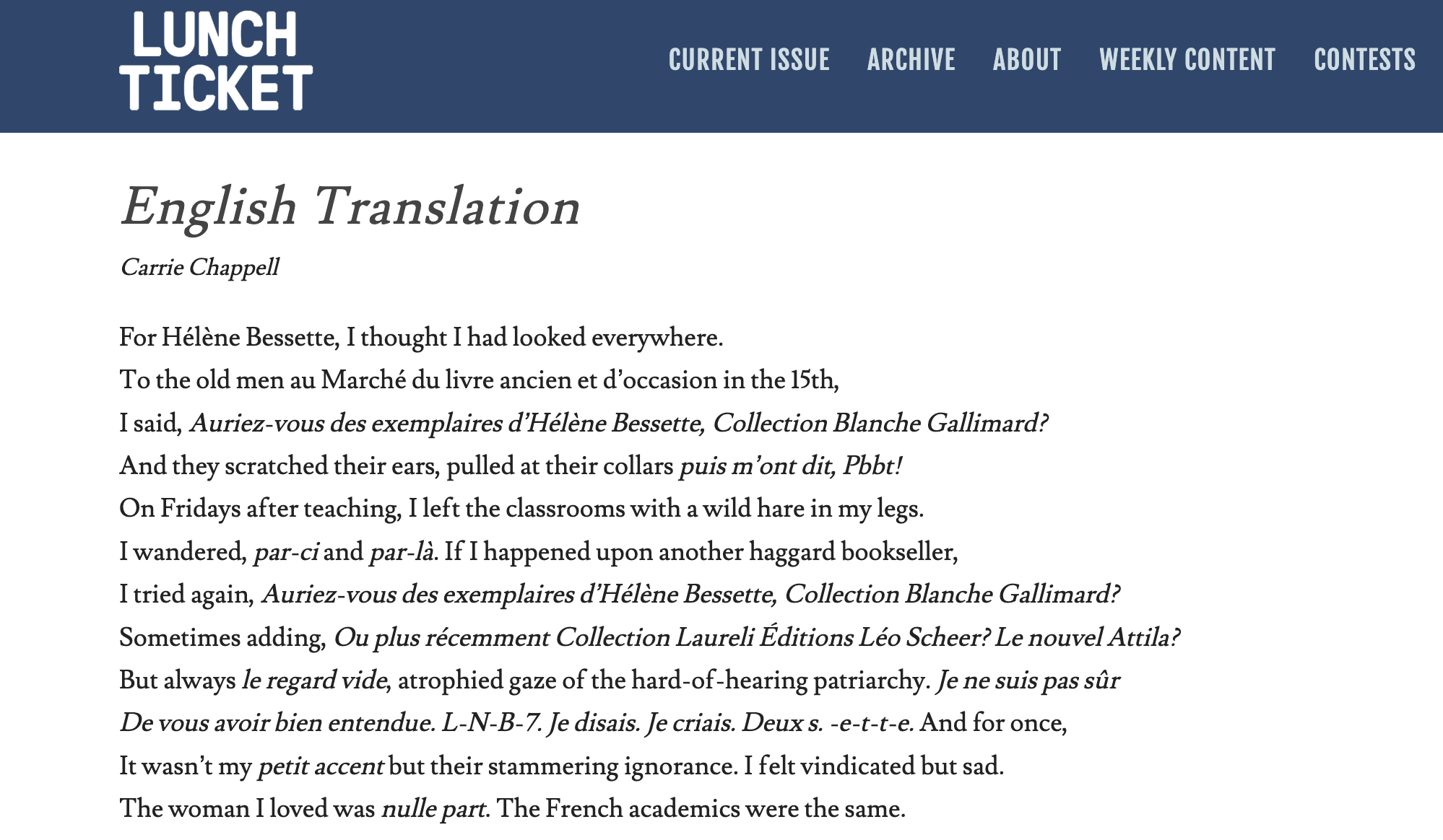 Thank you to the editors of Lunch Ticket. You can read the full text here.